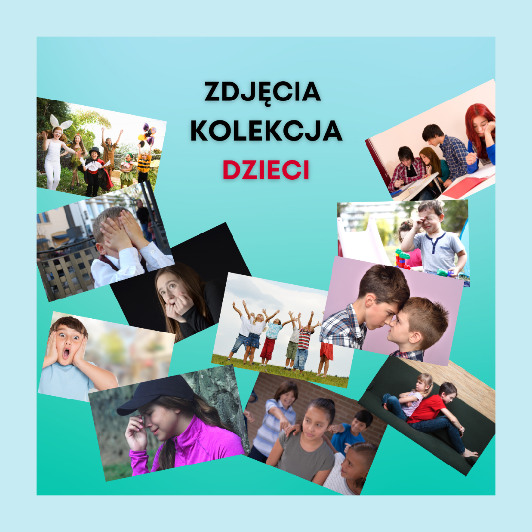 Kolekcja DZIECI to zestaw ponad 100 metaforycznych zdjęć bez opisów, których bohaterami są dzieci przedstawione w różnych, bliskich codzienności kontekstach. Zdjęcia zostały dobrane tak, aby były czytelne, autentyczne i możliwe do bezpośredniego odniesienia do doświadczeń dziecka – w domu, w szkole, w grupie rówieśniczej i w relacjach rodzinnych.