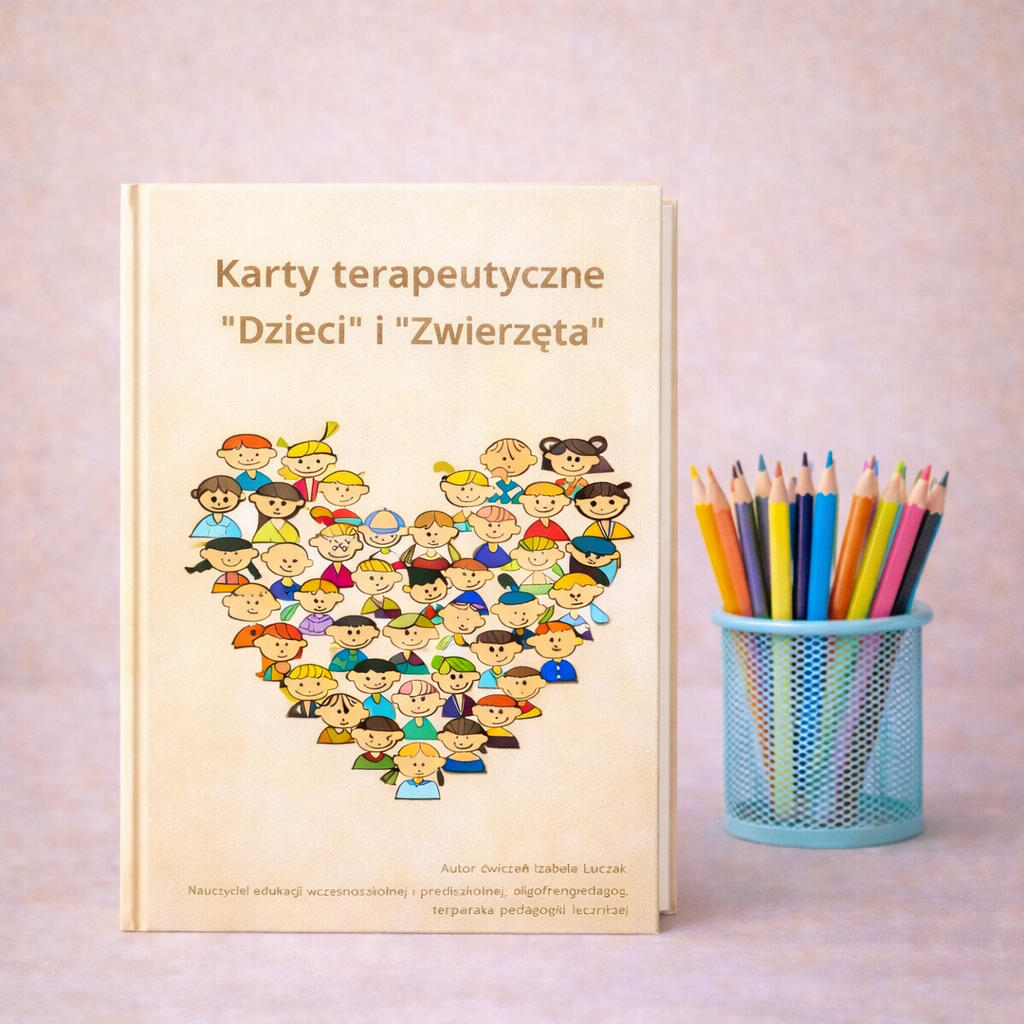 - 19 kart pracy cześć dotycząca kart „Dzieci”: praca z emocjami, relacjami, komunikacją,